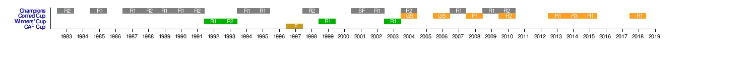 In 1997, the club reached the final of the CAF Cup, having finished as the runner-up.[1] In 2001, they reached the semi-finals of the CAF Champions League. In 2004 and 2006, they reached the group stage of the CAF Confederation cup and in 2019-20, that of the Champions League.
