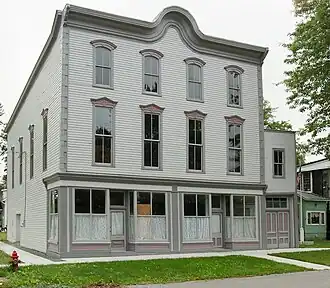 It is a three-story, wood-framed structure constructed in 1885 in the Italianate style. It has a two-story ell attached to the west side.[2]