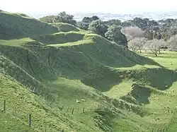 Many of the maunga (mountains) were occupied by substantial Māori (fortifications) before Pākehā settlement, and many terraces and other archeological remnants are still visible.[27] Many of the cones have been levelled or strongly altered, in small part due to the historical Māori use, but mostly through relatively recent quarrying of construction materials (especially scoria). However many of the remaining volcanoes are now preserved as landmarks and parks.[8]