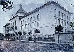 The school was established in 1919, following the union of Transylvania with Romania, and was the first Romanian-language high school in Orăștie.[1] Its founding resulted from the intransigent attitude of the Hungarian principal at the Reformed Church’s Kún Kocsárd College, who refused to record grades for Romanian language as a subject. This spurred students and local intellectuals to call for a separate institution, and every Romanian pupil from Kún defected to the new school, which had eight grades and was named for aviator Aurel Vlaicu.[2] For two years, it operated out of the former state girls’ school. In autumn 1921, with 427 pupils causing overcrowding, it moved into an 1847 building that once belonged to the Reformed Church.[1][2] Among the major donors of funds and educational materials were politicians Ioan Mihu, Aurel Vlad, and Petru Groza.[2]