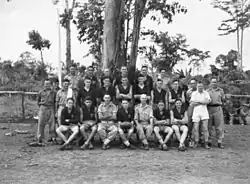 In May 1943, serving in the Territory of Papua during the New Guinea campaign began an informal league which were among the earliest recorded matches in Papua New Guinea. The league consisted of teams including Konedobu, Wirraways, Razorback, Strafers, Wallabies, Pioneers, Bower Birds, Ack-Redians, John's Gully.[4][5] On 29 April 1943, an RAAF team held a secret training session.[6] Its first match was held that weekend on the 1st May.[7] Another higher profile match was held on the 5 May 1943 featuring several notable Australian players.[8] On Saturday 22 May 1943, RAAF Wirraways 13-10 defeated Razorback 9–8.[9] On the 30 May 1943, John's Gully R.A.A.F. Australian Rules football team against a Waigani Road team at the Gully Oval, the R.A.A.F. Wirraway Australian Rules football team also called for opponents.[10] Other teams included Regiment and Con. Depot.[11]
