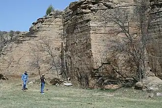 It includes four "rutted traces" of the Cimarron Cutoff of the Santa Fe Trail, and a sandstone outcropping known as Autograph Rock. The rock has travelers' names from the 1850-1865 era.[2]