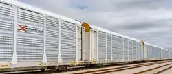 An autorack, also known as an auto carrier (also car transporter outside the US), is a specialized piece of railroad rolling stock used to transport automobiles and light trucks. Autoracks are used to transport new vehicles from factories to automotive distributors, and to transport passengers' vehicles in car shuttles and motorail services, such as Amtrak's Auto Train route.
