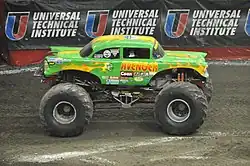 The Avenger was created in 1997 by Columbus, Michigan native Jim Koehler.[1][2] The original monster truck sported a forest green Chevrolet S10 body style and a teal chassis and rims. With the exception of the design featured at World Finals 14, the Avenger truck has always sported at least three flaming skulls (one on each side and one on the hood) and flowing flames running from the wheel wells. As time passed, the S10 body was replaced by a 1957 Chevrolet Bel-Air body[3] with bright green headlights, which is the same body style that is run today by "Mr. Excitement."