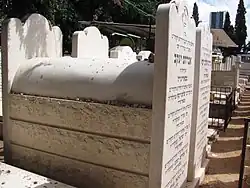 Graves of Rabbi Avrohom Yaakov Friedman (front) and his father, Rabbi Mordechai Sholom Yosef Friedman (rear), in the Nahalat Yitzhak Cemetery, Tel Aviv