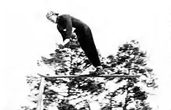Nilsson making a record jump of 41,5 metres in Saltsjöbaden.