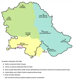 Map showing occupation zones in Vojvodina from 1941 to 1944.