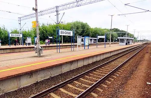 Błonie railway station is a railway station in Błonie, Poland. The station is served by Koleje Mazowieckie, who run trains from Kutno to Warszawa Wschodnia.