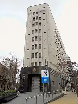 The main offices of the Bank are located in the building located at the intersection of Libertador Avenue and Mercedes Street. Designed by Ítalo Dighiero and Beltrán Arbeleche in a modernist style, it was inaugurated in 1940.[10]