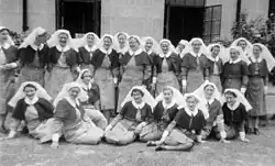 Nursing staff of 2/13th Australian General Hospital in Singapore, September 1941. Six of these nurses, including Vivian Bullwinkel (standing sixth from the left), were in the group who were murdered by the Japanese in 1942.