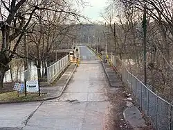 The private Haws Avenue bridge is the only road access to the island. (US 202 crosses the island but has no exit)