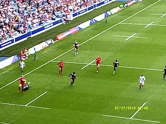 The Barbados national rugby sevens team is a minor national sevens side. They competed at the Commonwealth Sevens in 2014 replacing Nigeria who withdrew despite qualifying.[1][2] Barbados also participated in the World Series core team qualifiers at the 2014 Hong Kong Sevens.[3]