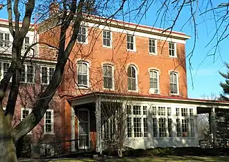 Barclay House, also known as the Joshua Hartshorne Estate, North Hill, and The Barclay, is a historic home located in West Chester, Chester County, Pennsylvania. The original section was built in 1866–67, and believed to have been designed by architect Addison Hutton (1834–1916). It was a 2+12-story, brick dwelling in the Italianate style. It was expanded to three stories with the expansion of 1935–36. Also added at that time was a three-story connecting block, three-story west block, and one-story north block. The house was also renovated in the Colonial Revival style. The north block was expanded to two stories in 1998. Also on the property is a contributing carriage house built in 1869. It was converted to a residence in 1925. It was built as a single family residence, but converted to a Quaker boarding home for the elderly in 1935–1936. The boarding home closed at this location in 1997.[2]