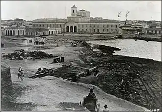 In the late 1950s, the Batista government bought the building and demolished it with the intention of building the headquarters of the National Bank of Cuba.[9] In a speech, Fidel Castro states: "We have always seen a building under construction here. This building (bank building) is an inheritance. We inherited this building at the time of the victory of the revolution. A building for the national bank was being built."[10] However, a photograph published in Havana in January 1959 showing Castro's son Fidelito riding on top of a tank contradicts this statement as the Beneficiensa building can be seen on the left background of the photo.