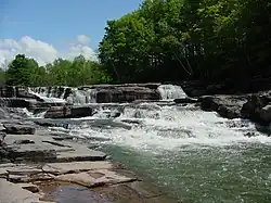 Batavia Kill is a 21-mile-long (34 km) tributary of Schoharie Creek that flows across the towns of Windham, Ashland and Prattsville in the U.S. state of New York. Its waters reach the Hudson River via Schoharie Creek and the Mohawk River. Since it drains into the Schoharie upstream of Schoharie Reservoir, it is part of the New York City water supply system. From the source to Maplecrest, Batavia Kill drains the northern slopes of the Blackhead Mountains, which include Thomas Cole Mountain, Black Dome, and Blackhead Mountain, the fourth-, third-, and fifth-highest peaks in the Catskills, respectively.