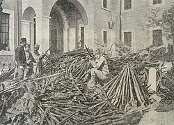 According to Arben Qirezi, Peter I of Serbia had ordered the execution of Albanian civilians living in Kumanovo.[24] Subsequently, after the battle, the Serbian forces had massacred an estimated 3,000 Albanians between Kumanovo and Uskub based on contemporary accounts.[25][26]