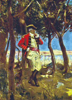 As the British force moved towards the larger tank, it was observed that the left arm of the Nawab's army had lingered behind the rest. When the rear of this division reached a point in a line with the northern point of the grove, it turned left and marched towards the grove. Clive, unaware that it was Mir Jafar's division, supposed that his baggage and stores were the intended target and sent three platoons under Captain Grant and Lieutenant Rumbold and a field piece under John Johnstone, a volunteer, to check their advance. The fire of the field piece halted the advance of the division, which remained isolated from the rest of the Nawab's army.[109][110][111]