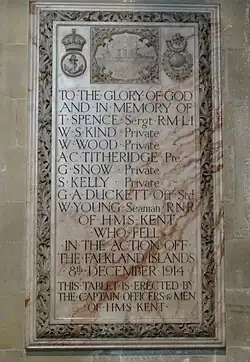Plaque to the 8 dead of HMS Kent in Canterbury Cathedral