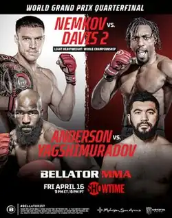 - ^ Adam Guillen Jr. (2021-02-09). "Bader vs Machida, Nemkov vs Davis first round matchups booked for Bellator Grand Prix in April". mmamania. Retrieved 2021-02-09.
