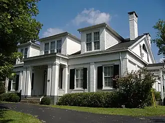 The Ben Johnson House is in the northern outskirts of Bardstown, Kentucky. It was built in 1851 in a Greek Revival style for state senator and lieutenant governor William Johnson. The house's name comes from William's son Ben Johnson, who was a congressman for two decades, speaker of the state House, state senator and collector of internal revenue for Kentucky in the second term of Grover Cleveland.