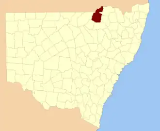 1. ^ "Benarba County". Geographical Names Register (GNR) of NSW. Geographical Names Board of New South Wales.