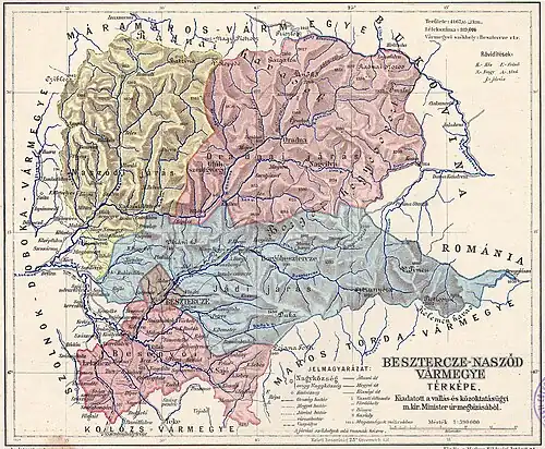 In the early 20th century, the subdivisions of the county Beszterce-Naszód were: