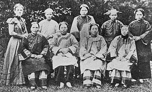 In the mission field, "Bible women" or "Bible readers" were local indigenous women. Initially, Bible women were recruited from domestic workers in missionary homes, from the wives and mothers of indigenous male evangelists, or graduates from missionary girl's schools.[4] [5]The majority of them held lower social status in their respective countries.[6] They were either supported by female missionaries or by local churches but were usually the lowest paid or even sometimes they were unpaid.[7] These local Christian women helped the British missionaries, especially female missionaries to perform their daily tasks and to accomplish their mission goal. Ruth Tucker argues that "without Bible Women, female missionaries would have been at a loss."[8]