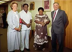 ![]() Hon W. A. M. Gunn (right) meeting with Ati George Sokomanu in 1985 | |