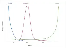 The process that converts the chemical energy of food into ATP (which can release energy) is not dependent on oxygen availability. During exercise, the supply and demand of oxygen available to muscle cells is affected by duration and intensity and by the individual's cardio respiratory fitness level.[1] It is also affected by the type of activity, for instance, during isometric activity the contracted muscles restricts blood flow (leaving oxygen and blood borne fuels unable to be delivered to muscle cells adequately for oxidative phosphorylation).[2][3] Three systems can be selectively recruited, depending on the amount of oxygen available, as part of the cellular respiration process to generate ATP for the muscles. They are ATP, the anaerobic system and the aerobic system.