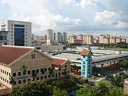 Bishan New Town became the first in Singapore to depart from the brutalist design seen in most previous Housing and Development Board (HDB) towns. Instead of slab-like residential blocks that were built in uniformed rows, apartment blocks in Bishan varied in height and were often dislocated. Flats within the town also featured pitched roofs which have since become closely associated with the skyline of Bishan.[1][7] The town is also home to three of Singapore's most prestigious educational institutions: Catholic High School, Raffles Girls' School, and Raffles Institution.[7][11]