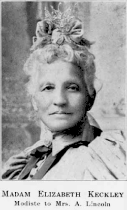 • Dressmaker – After purchasing her freedom in St. Louis, Elizabeth Keckley moved to Washington, DC, and became the dressmaker for Mary Todd Lincoln, producing elegant gowns for the capital's elite women. Her 1868 autobiography Behind the Scenes display her ardor and initiative in creating her business and her life.[6]
