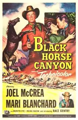 Black Horse Canyon is a 1954 American Western film directed by Jesse Hibbs and written by Daniel Mainwaring and David Lang. It is based on the 1950 novel The Wild Horse by Les Savage Jr.. The film stars Joel McCrea, Mari Blanchard, Race Gentry, Murvyn Vye, Irving Bacon and John Pickard. The film was released in June 1954, by Universal Pictures.[2][3][4]