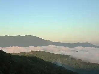 The forests of the Black Mountains are typically divided into three zones based on altitude: the spruce-fir forest, the northern hardwoods, and the Appalachian hardwoods. The southern Appalachian spruce-fir forest, though sometimes referred to as "boreal" or "Canadian," is a unique plant community endemic to a few high peaks of the Southern Appalachians. In fact, it is more akin to a high elevation cloud forest.[8] It is dominated by red spruce and Fraser fir, and coats the elevations above 5,500 feet (1,700 m). The northern hardwoods, which consist primarily of beech, yellow birch, and buckeye, thrive between 4,500 and 5,500 feet (1,400 and 1,700 m). The more diverse Appalachian hardwoods, which include yellow poplar and various species of hickory, oak, and maple, dominate the slopes and stream valleys below 3,000 feet (910 m). Pine forests, consisting chiefly of Table Mountain pine, pitch pine, and Virginia pine, are found on the drier south-facing slopes.[9] mountain paper birch, which is rare in North Carolina, grows sporadically on the slopes of Mount Mitchell.[10]