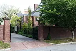 Frederick E. and Albina Bodell House 1928, 25 Balton Road, Providence RI: William T. Aldrich of Boston, architect. A handsome dwelling designed in the manner of an 18th-century English manor house, set on a large lot partly surrounded by a brick wall. Constructed of hollow tile with Flemish-bond brick veneer, it has a two-and-a-half-story, hip-roofed main block with a one-and-a-half-story, hip-roofed, L-plan service and garage wing extending from one side. The house has a garden front on the south and an entrance front on the north. The seven-bay garden front has a central segmental-arch-pediment door surmounted by a stone bay with a shallow relief caning of a shouldered architrave around the window. The entrance front, overlooking a motor court framed by the main block and the service wing, has a three-bay, end-gabled entrance pavilion with a doorway-framed by pilasters and a pediment. There are segmental relieving arches over the windows and segmental-arch roof dormers. This is one of the grandest and most costly houses erected in Providence in the 1920s. Bodell was a partner in Bodell & Company, a banking and brokerage firm.