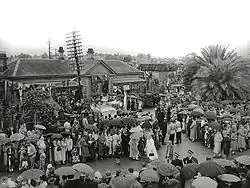 Captain Martindale, the colony's chief engineer, was not happy with work done by contractor John Gibbons and refused to issue a certificate for work done. Not happy with the decision Gibbons told his men to remove three portions of the track near Parramatta. He was arrested and placed in the Parramatta Watch House before being released on bail. Two days later the first train ran into Blacktown Road station. The station was renamed Blacktown on 1 August 1862.[3][4]