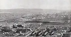 By the Decision of the Council of Ministers (H.C.M.) No. 1635/1952, it was envisaged that in the Bacău Region, Târgu Ocna Raion, the construction of Borzești Industrial Group and the related proletarian city, Onești. The industrial zone was built northeast of the former village of Borzești, between the railway and the Trotuș River, its surface exceeding that of other parts of the city. As a result of this decision, in 1952, the colonies for construction workers began to be built and then the foundations of the first apartment buildings.[4] At the city and industrial sites have worked alongside construction workers assembled in colonies and common law detainees or political prisoners.[8] Soon the city had the highest number of intellectuals per thousand inhabitants, and the average age was 28 years old.[11]