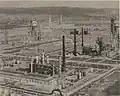 The petrochemical plant was built in four stages: First stage (1952-1960), comprises the first works from the Borzești Thermal Power Plant (1952), the No. 10 Oil Refinery[12] (by H.C.M .1683/1952[13]), the Rubber Plant (H.C.M. 1498/1957[14]) grouped on 610 ha; (1961-1965), the phenol, acetone equipments (1961), synthetic rubber (1963) and styrene-polystyrene (1964), the industrial platform exceeds 846 ha. In the third stage (1966-1970), works were started at Refinery II and the Poly-isoprenic factory. In the fourth stage, two industrial objectives were put into operation: Synthetic Rubber Plant II and Refinery II. The surface of the platform has exceeded 1000 hectares and includes the city platform based on the food industry, wood processing and others.[12]