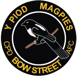Bow Street F.C. are based at Rhydypennau near Bow Street in Ceredigion, Wales, about 4+12 miles (7.2 km) north-east of Aberystwyth, and are currently playing in the Ardal NE League. The team are nicknamed the Magpies (Welsh: piod), from the time when their strip was black and white stripes.