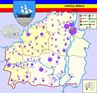 Map of Brăila County's ethnic groups as reported in the 1930 census.
