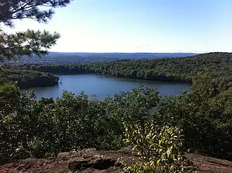 View of Plainville Reservoir (AKA Crescent Lake) and Sunset Rock State Park from the Bradley Mountain summit. | |
