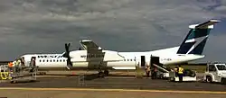 A WestJet Encore Bombardier Q400 at Brandon Airport