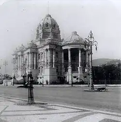In 1897, José Roberto da Cunha Salles directed Ancoradouro de Pescadores na Baía de Guanabara, considered to be the first film in the history of Brazilian cinema.[24] In 1909, the Municipal Theater of Rio de Janeiro, one of the greatest symbols of the Belle Époque in the city, was inaugurated. Later, the entire Cinelândia complex, where the theater is located, was reconfigured with the installation of the Monroe Palace and several cinemas (Cine Odeon, Cineac Trianon, Parisiense, Império, Pathé, Capitólio, Rex, Rivoli, Vitória, Palácio, Metro Passeio, Plaza and Colonial).[25][26]