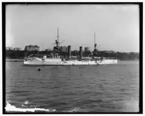 Almirante Barroso was the first Brazilian vessel to have radiotelegraphy, thus promoting the first experiences with this system in the country. In 1900, it was part of the White Division together with the battleship Riachuelo and the cruiser Tamoyo, responsible for taking the then president Campos Sales to Argentina in return for the same gesture by Argentine president Julio Argentino Roca. Among some of its commissions, a trip to Chile in 1903 stands out, in return for the visit of ships from that nation to Brazil. In 1904, it was the flagship of the Northern Naval Division, in Manaus, during a period of tension between Brazil and Peru over border issues. During the Aquidabã disaster in 1906, it helped to rescue the shipwrecked, wounded and dead. In 1908, it brought back the remains of admirals Barroso and Saldanha da Gama from Uruguay.[4] At the time of the Revolt of the Lash, in 1910, Almirante Barroso was among the vessels that faced the mutineers, but its firepower and that of the other loyalist ships was negligible compared to just one of the rebels' dreadnoughts.[5][6] It was considered by the navy to be an outstanding ship, "for its impeccable presentation and for the rigor and discipline, order and efficiency maintained on board". The vessel was in active service until 28 July 1931.[4]