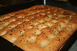 The Chorleywood process for mass-producing bread was developed in England in the 1960s before spreading worldwide.[12] Major commercial bread brands include Warburtons, Hovis, and Kingsmill,[13] and 60-70% of the bread eaten in the UK is white.[14] Rye bread is mostly eaten in the form of Scandinavian-style crisp bread, such as that produced by Ryvita in Birmingham. The popularity of Indian cuisine in Britain means that Indian breads such as naan are made and eaten there. Continental varieties, such as baguettes (also known as "French sticks"), focaccia, and bagels are also popular.