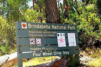 ![]() Brindabella National Park sign, January 2009 | |