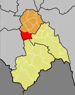 The former Bensham Manor ward (red) shown within Croydon North constituency (orange) and the London Borough of Croydon (yellow)