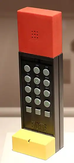 The Enorme Telephone, designed by Ettore Sottsass for Brondi (1986) is part of the MoMA collection in New York and the designer 'choice USA. It was manufactured by Brondi between 1986 and 1994.