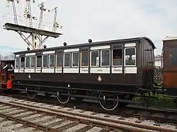 | LCDR | 9 | 4-wheel first | Built 1880. Sold to Woolwich Arsenal in 1916. One of only two LCDR carriages to be preserved on their original underframe. Operational. | |
