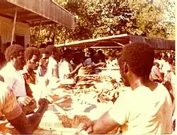 Very well established primary, high, and building and technical schools functioned, the high school with a province-wide enrollment of some 450 students. Secondary school students had once been forbidden by Australian Marist Brothers to speak indigenous languages though foreign teachers of nationalities other than Australian — British and Canadian — urged that such rule be modified; students were allowed to speak their own languages on weekends and they soon picked up New Guinea Pidgin ("Tok Pisin," as Australian academics lately insist it be called in English) for communicating in languages other than their own—secondary students were from all over Bougainville and Buka with a few from elsewhere in the New Guinea Islands and mainland New Guinea whose parents were employees in Bougainville -— or English and New Guinea Pidgin. Academic standards were remarkably high, with the 80 grade-10 graduates initially moving on to post-grade 10 schools elsewhere in the country at a rate of a handful of 80 but it quickly moving to over 75. Unlike in Enga Province and elsewhere in the New Guinea Highlands where Australian academic supervisors insisted that day students be allowed to take books home despite the warning that that would result in parents tearing them up to roll cigarettes, Buin High School students rejoiced in ample library books, borrowed them both at school and to take home, and read them thoroughly. Sporting activities at Buin High were extremely lively on well-kept fields, as were cultural exhibitions and exchanges and choir singing.