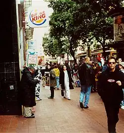 In 1990, Hungry Jack's renewed its franchise agreement with then BK parent Burger King Corporation, which allowed Hungry Jack's to license third party franchisee. One of the terms and conditions of the renewed agreement required Hungry Jack's to open a minimum number of new locations each year for the duration of the contract. Shortly after the Australian trademark on the Burger King name lapsed in 1996, Burger King requested that Cowin rebrand the Hungry Jack's locations to Burger King, which Cowin declined.[60] Burger King Corporation accused Hungry Jack's of violating the conditions of the renewed franchise agreement by failing to expand the chain at the rate defined and sought to terminate the agreement. Under the aegis of this claim, Burger King Corporation, in partnership with Royal Dutch Shell's Australian division Shell Company of Australia Ltd., began to open its own stores in 1997 beginning in Sydney and extending throughout the regions of New South Wales, Australian Capital Territory and Victoria.[61][62][63] In addition, BK sought to limit HJ's ability to open new locations in the country, whether they were corporate locations or third-party licensees.[64]